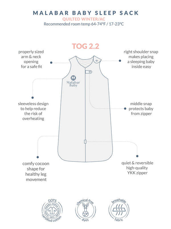 Malabar Baby Handmade Wearable Blankets are a safer alternative to blankets in the crib. Designed in a comforting shape to help the baby feel cozy and secure, it's the perfect transition from the womb or from using our organic muslin swaddles