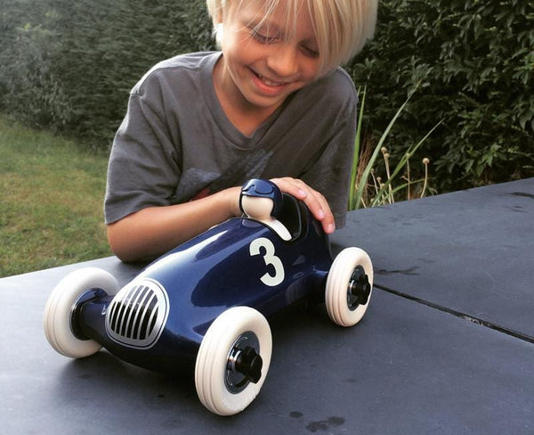 The very first vehicle in our collection, Bruno is a Playforever original. Born from a childhood fascination with tin cars and inspired by the beauty of classic cigar racers, founder Julian Meagher set out to create a debut piece that not only looked classic and stunning, but that was beautifully made from the very best materials available. Months of researching production methods to attain the glossiest surfaces possible; 5mm thick wall sections that had never been achieved before and that produced a solid sound, resonating when tapped; genuine rubber tyres as opposed to cheap skin versions. Honest materials that spelled quality, celebrating plastic as a truly exceptional material.