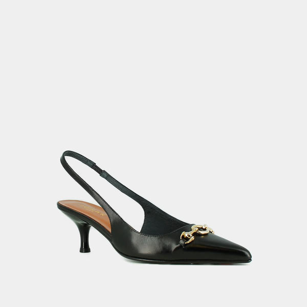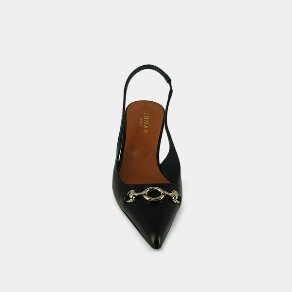 New hybrid model from Jonak, our datura pumps in black leather combine avant-garde, timeless and daring.The golden jaws on the front of the pumps constitute wonderfully with the depth of the black leather and give you a look full of taste.