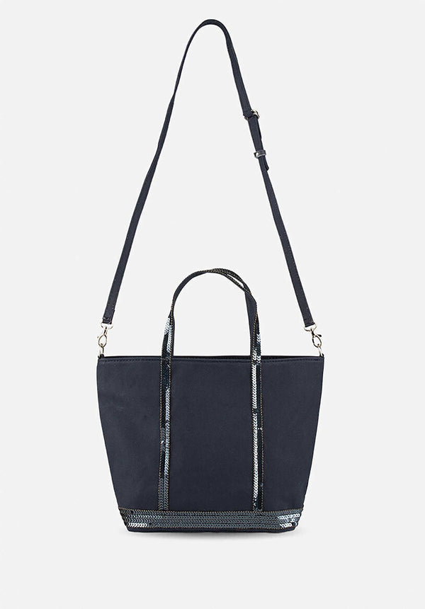 Cotton canvas cabas tote bag highly durable and waterproof, topped with sequins with shoulder trap.