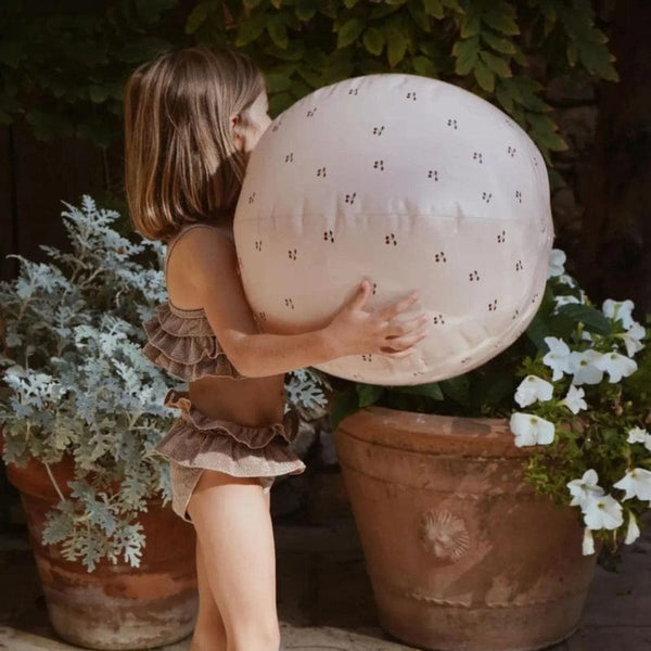 Beach balls are essential for summer vacations, so take advantage of this beautiful cherry blush ball to play with outdoors or at your children's birthday parties.