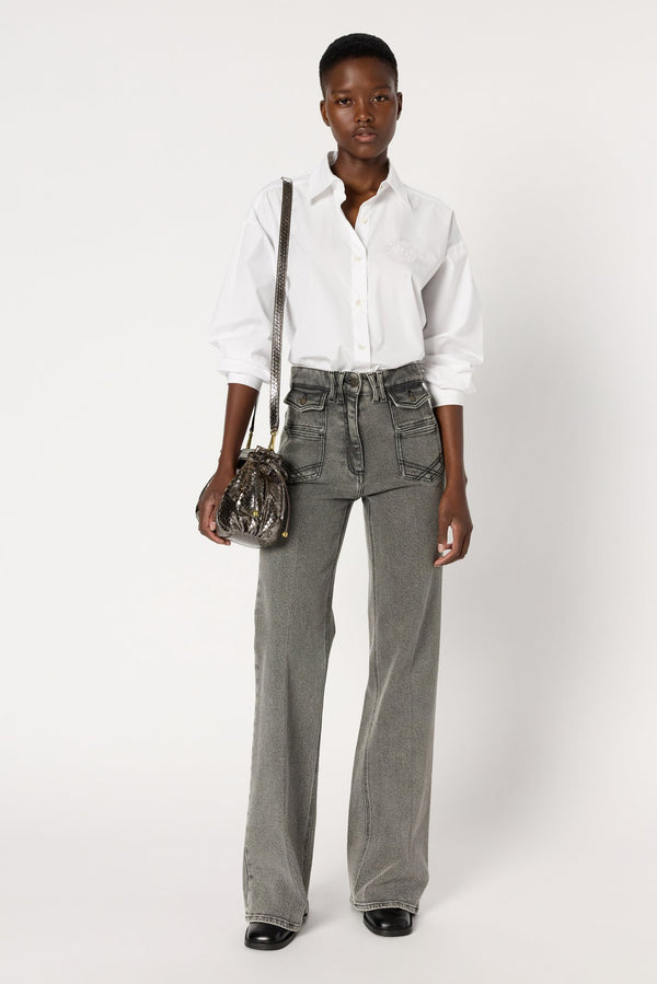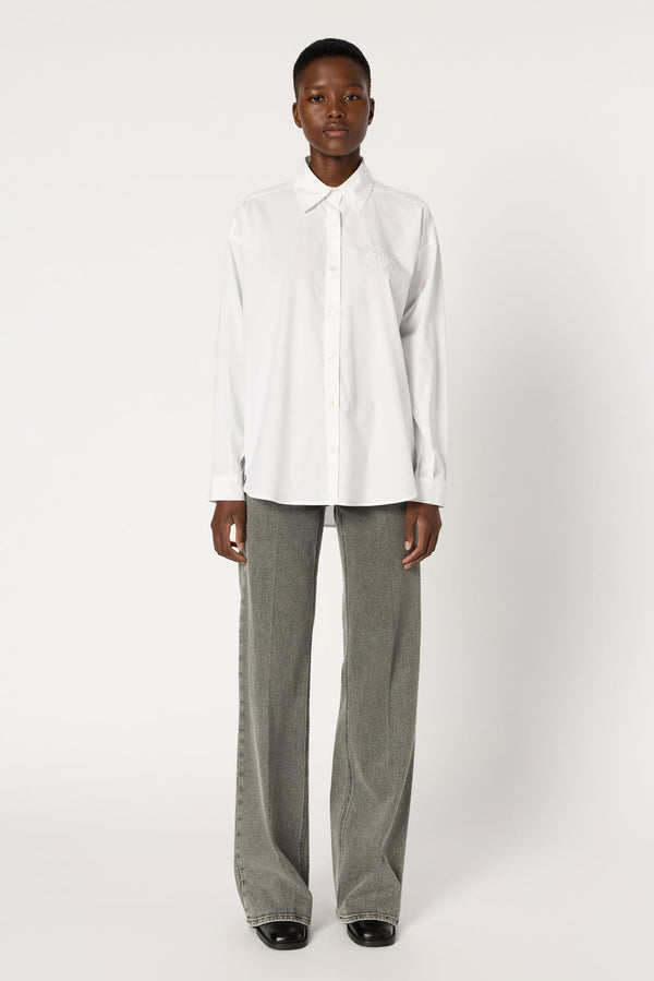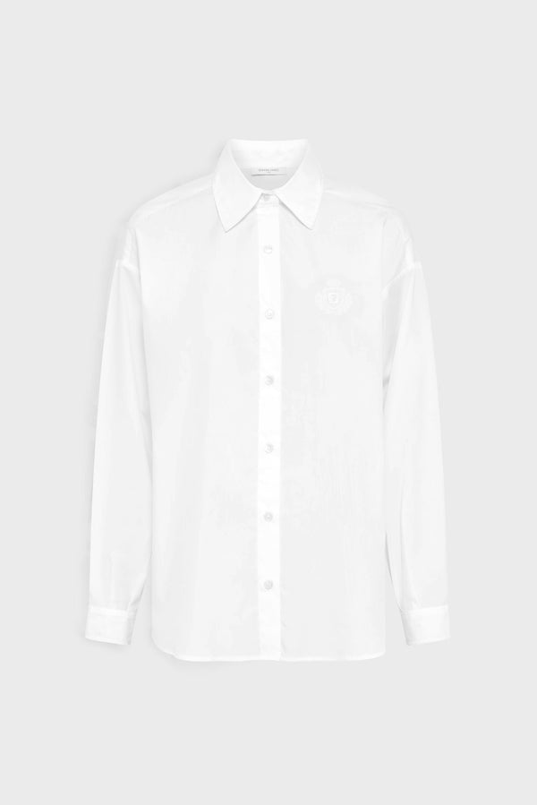 WHITE POPLIN SHIRT WITH EMBROIDERED COAT-OF-ARMS ON CHEST POCKET TO ADD A TOUCH OF PREPPY CHIC TO ANY OUTFIT. 100% COTTON.