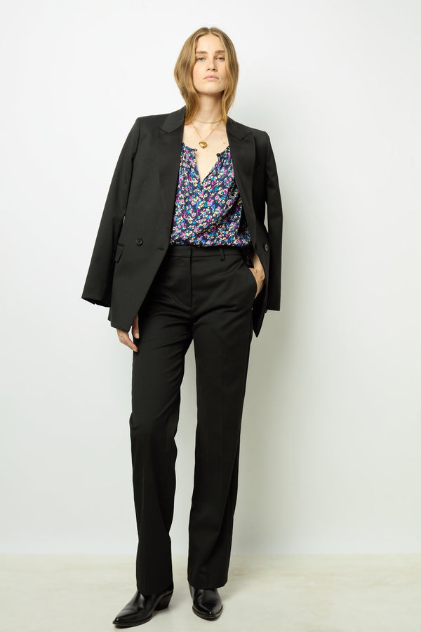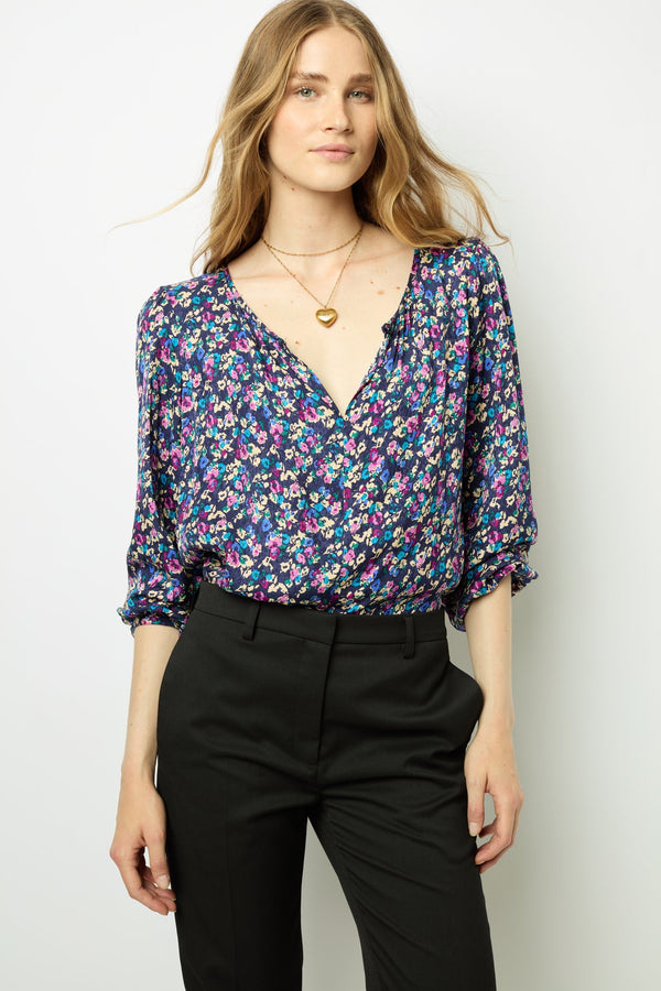 SOFT BLOUSE WITH FLOWER PRINT ON JACQUARD BACKGROUND.
