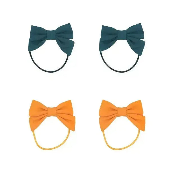 The beautiful bow hair ties come in neutral and bold colors, offering a whimsical touch or gentle statement to any outfit, making every child feel extra special! Featuring strong but stretchy elastics that are perfect for keeping fine to thick hair in place, 4 in one pack and made with OEKO-TEX 100 organic cotton and elastic by Grech&Co.