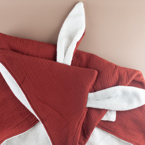 Wrap your little bub in the most adorable bunny bath cape after bath time or after a swim in the sea! This hooded bath cape is hypoallergenic, made of 100% organic cotton, quick absorbent and very soft on the skin.