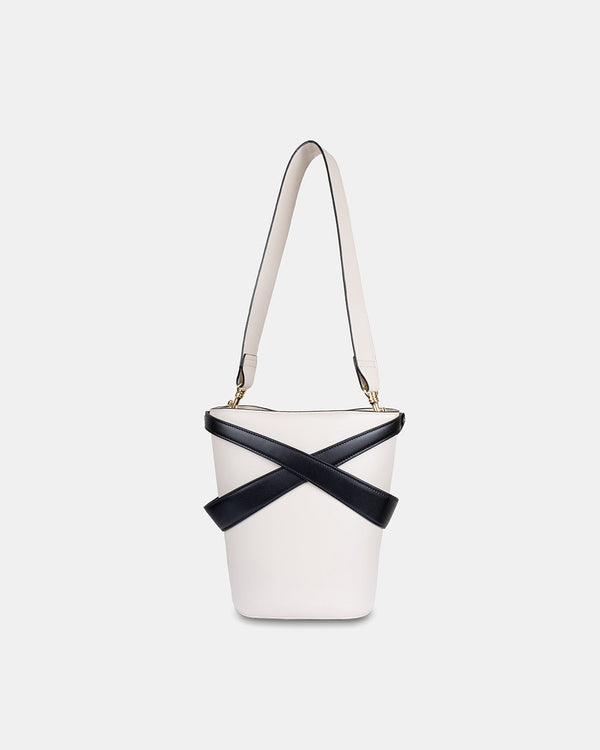 Two ways to style this bucket bag––handheld with the fixed cross straps or more casually, with the detachable strap as a shoulder bag. The 4cm wide detachable strap allows for extra comfort on the shoulders.