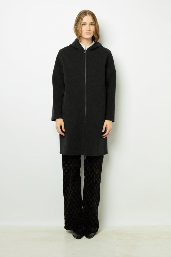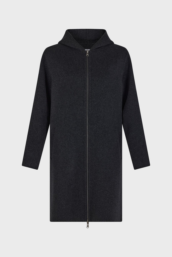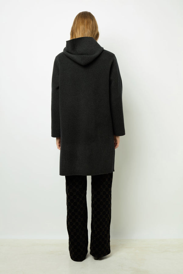 100% DOUBLE-FACE WOOL HOODED JACKET, AS SOFT ON THE INSIDE AS ON THE OUTSIDE. ITS GENEROUS VOLUME MEANS IT CAN BE WORN WITH A THICK JUMPER OR JACKET.