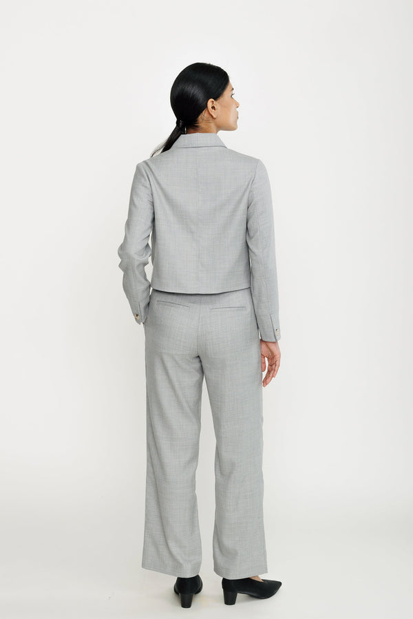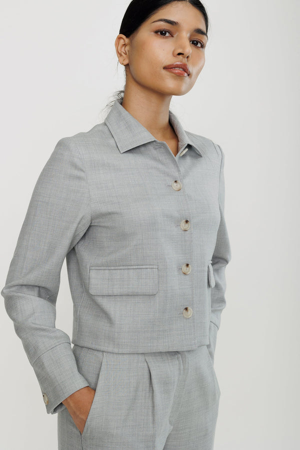 Refresh your work style with our softly structured blazer crafted from a luxurious wool suiting. This modern must-have combines bulk-free comfort with a chic silhouette. Featuring a cropped cut that pairs perfectly with high-waisted bottoms, like our High-waist Pleated Trouser.