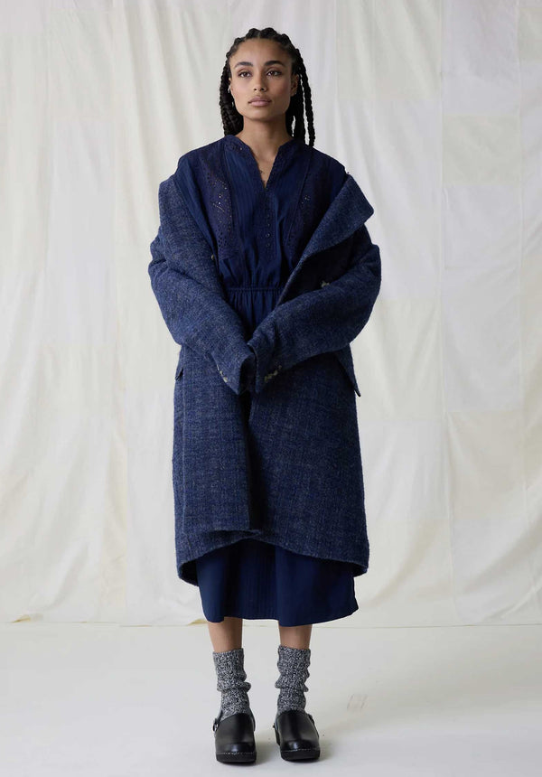 The slightly loose fit provides ultimate comfort. Try it with a turtleneck top or a sleeveless jumper over it: it gives free rein to the imagination for the ultimate folk-chic look.