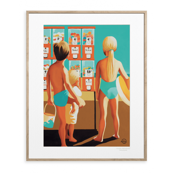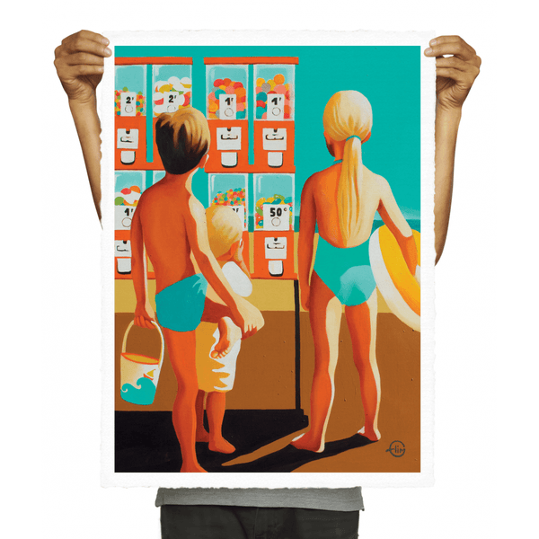 Emilie Arnoux is an artist known under the name of “Elim”. Her large oil paintings, which are inspired by pop and beach culture as well as Surf Art, capture one’s eyes by their contagious positive energy. Emilie grew up by the beach and, very early on, she built herself her own universe, mixing her passion for water sports, her happy life by the beach, her fascination for America in the 1950s and the 1960s and the poster style of that time.