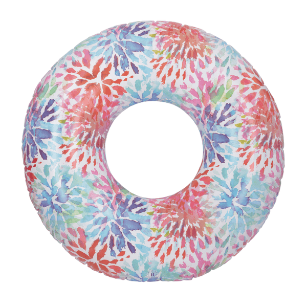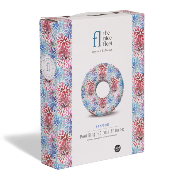 A Large inflatable round float Decorated with pastel watercolors, evoking the Hamptons and its sweet summer nights illuminated with fireworks. Ideal to cheer up and have fun in a swimming pool or for holidays at the sea or by the lake. Delivered in a nice box with handle including a patch of repair in case of punctures.