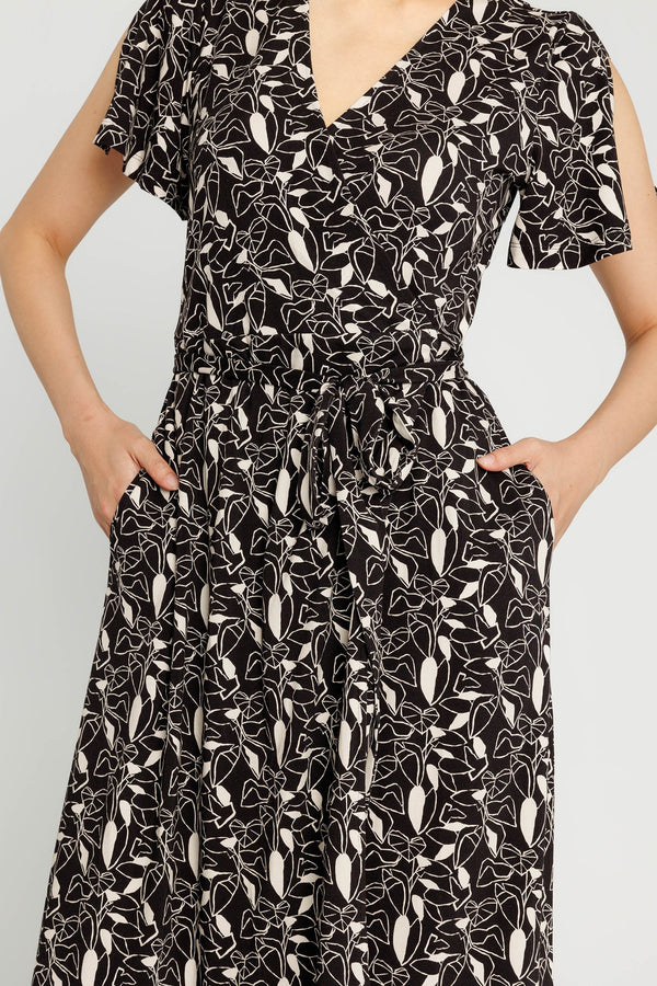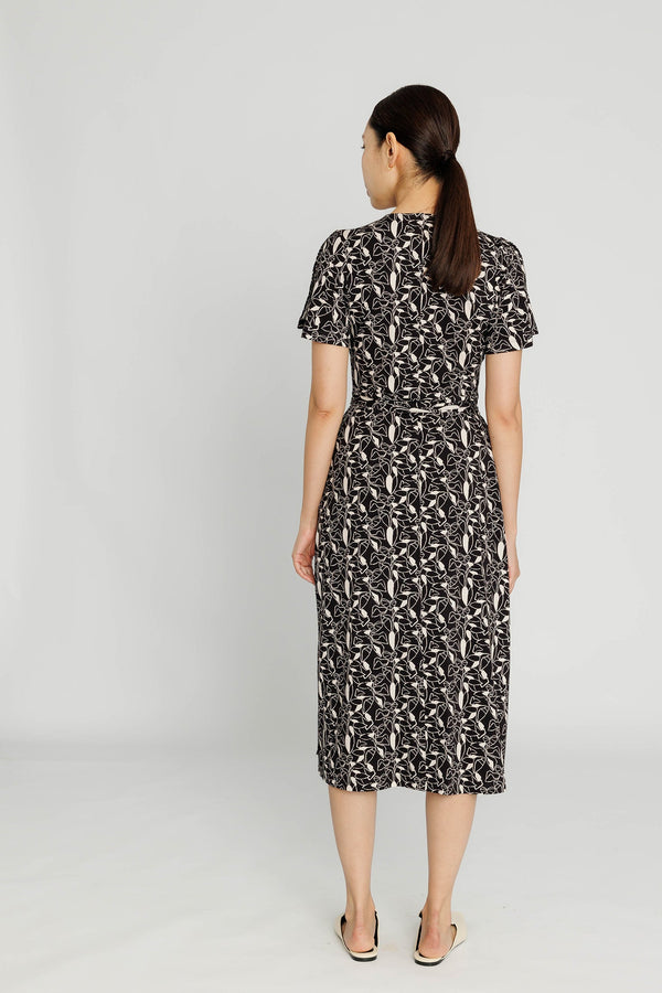 This flattering wrap-around dress is expertly cut to fall and flow elegantly. With a playful botanical print, flutter sleeves and thoughtful details, this dress will quickly become a favourite in your day and evening rotation. Crafted from an ethically-sourced Bamboo-cotton blend that's also luxuriously soft and breathable.