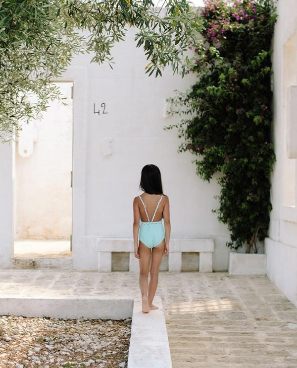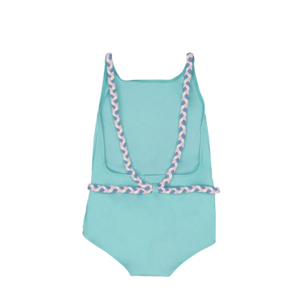 This sun protective swimsuit is new to our collection and already one of our favorites! This Aqua green version is super feminine with its thin braided straps that wrap around the waste like a belt. Made with super resistant soft fabric, it dries with the bat of an eyelash, making this little gem a guaranteed favorite.