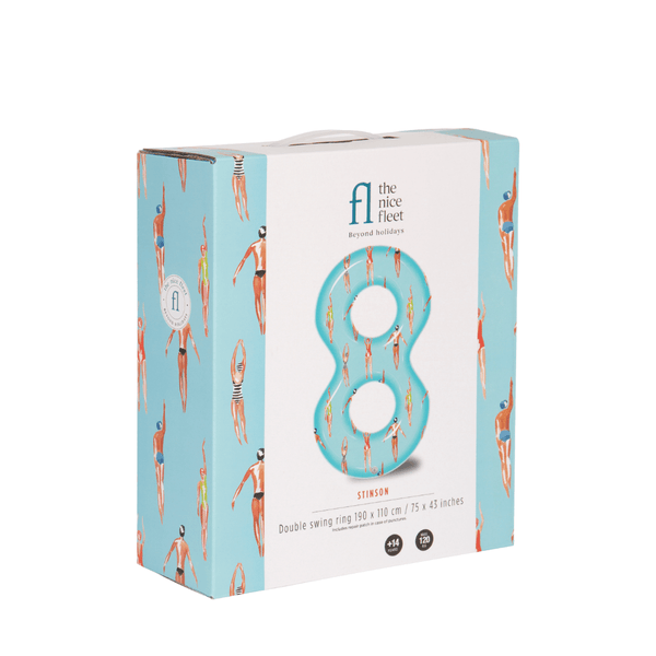 A large double inflatable buoy with a swimmer design reminiscent of the retro atmosphere of Stinson, California. Ideal for two swimmers to chill and cheer up on the beach and in the pool. Delivered in a nice box with handle including a patch of repair in case of punctures.