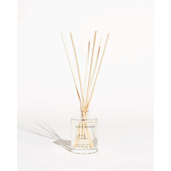 Perfume any room with our new ultra-chic reed diffusers for a delightful botanical aroma without the flame. Perfect for your home office, powder room, or any space that needs that extra something something. Our custom made glass screenprinted Reed Diffuser bottles are packed in a two-piece textured paper tube. Includes wooden stopper and 8 rattan reeds. Lasts for approximately 4-5 months.
