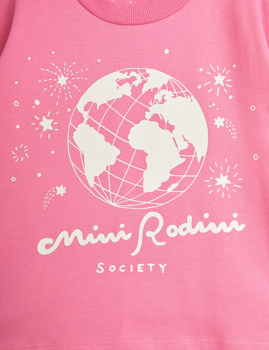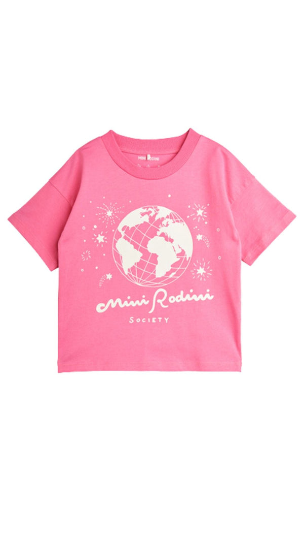 Discover the perfect blend of style and comfort with this Mini Rodini T-shirt in pink. Crafted from 100% GOTS-certified organic cotton, it offers superior quality and eco-friendly appeal. The soft and lightweight fabric ensures your child's comfort throughout the day. Featuring a bold Mini Rodini Society print, this kids T-shirt adds a touch of flair to your little one's wardrobe. Its loose fit and ribbed collar crew neck contribute to a relaxed and trendy look. Designed with active kids in mind, the shirt allows for unrestricted movement and is ideal for warm, humid weather thanks to its breathable nature. This pink organic cotton T shirts isn't just fashionable; it's a sustainable choice that doesn't compromise on comfort or style. Whether for everyday wear or special occasions, it's sure to become a favorite in your child's clothing rotation. We love Mini rodini organic cotton kids clothing collection.