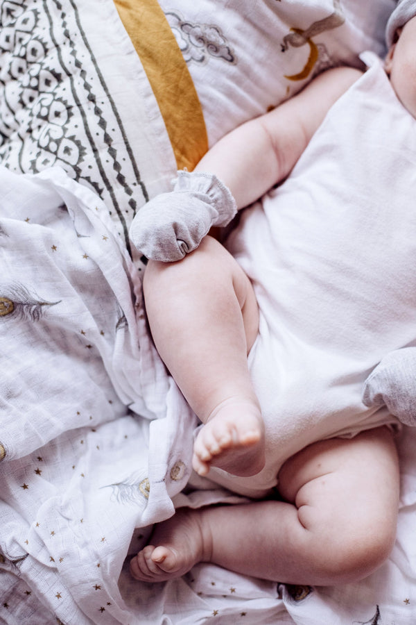 Buttery soft baby accessories that every new parent needs for their newborn. The hat, bandana bib, and mittens come ready to gift in a sturdy reusable stylish pouch and are a practical gift that every parent will appreciate