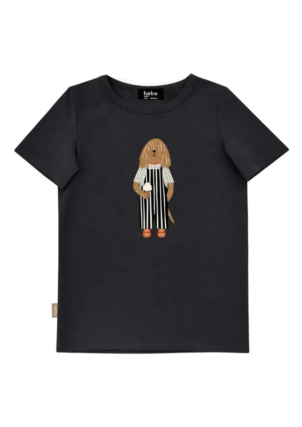A breathable, organic cotton (GOTS) men's t-shirt in dark grey colour with fun dog print is comfortable and stylish for everyday wear and perfect for family days. Made from fabrics that are soft but durable, without harmful chemicals by Hebe in Latvia. We love the fun print.