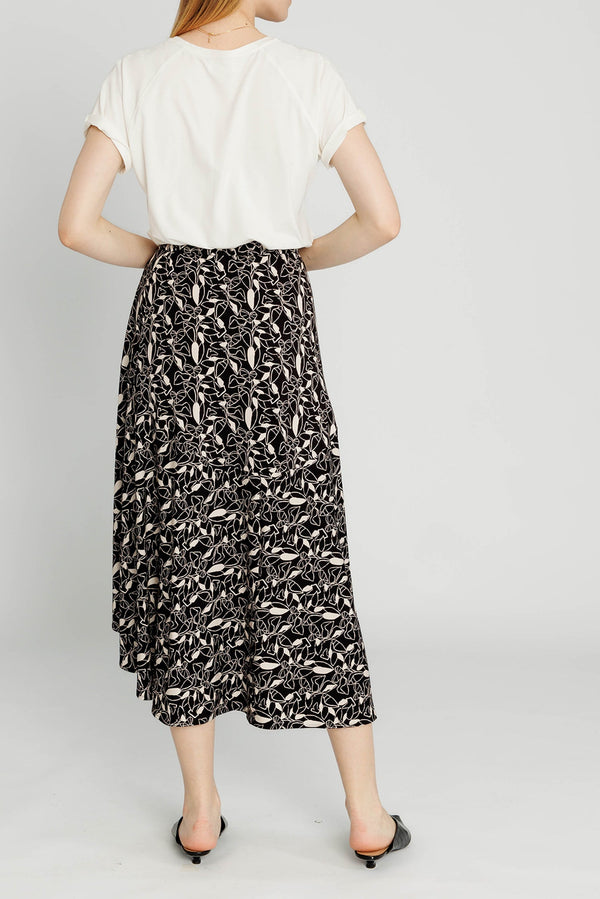 Home Pull-on Midi Wrap Skirt - Black Botanical