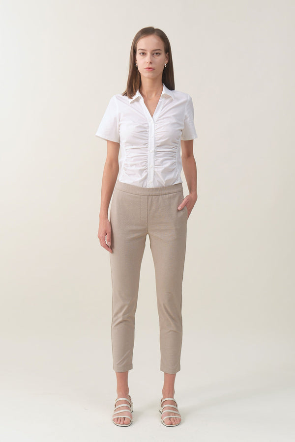 A premium version of our best-selling, grab-and-go pant - upgraded with a limited-edition houndstooth fabric, rescued from deadstock. Cleverly hidden elastic in the waistband of this slim chino embodies modern, effortless style. From an office to an airplane to brunch - paired with flats or dressed up with heels, you'll reach for this seasonless staple again and again.