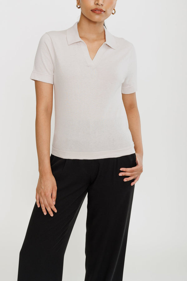 Our fine-knit Cotton Polo is an effortless essential for cooler days. Crafted from a luxurious blend of Cotton with a touch of Cashmere, you will fall in love with the ultra-cozy sensation of this fabric on your skin. Pair this top with our High-waist Pleated Trouser for a smart office look, or with a casual skirt on the weekend.