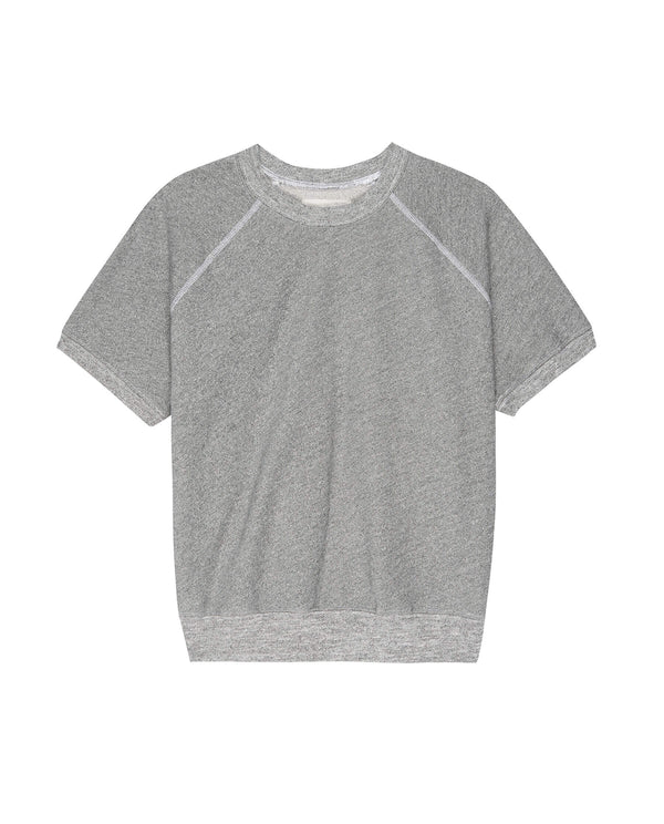 The Short Sleeve Sweatshirt. is a perfect transition piece for Spring. Designed with a slouchy and easy fit with cropped short sleeves, a classic crew neck, raglan sleeves, and rib finishings that pairs easily with shorts, sweatshirts, or your favorite jeans.