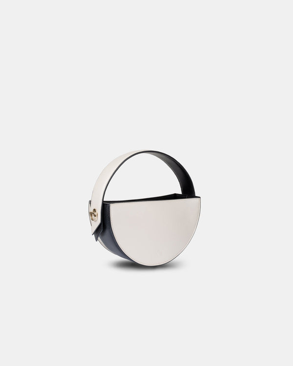 An elegant mini bag to hold all your essentials, The O.N.E. signature bag features a round hand bag with detachable 4cm wide shoulder straps for two way styling. The handle position can be adjusted up to 180 degrees to convert the bag to a semi-circle shaped bag to fit a variety of styles.