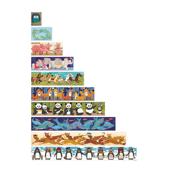 1 只猫头鹰、1 只鳄鱼、3 只小猪、5 匹马……最后你得到了 10 只企鹅! 10 个渐进式谜题,以有趣的方式学习如何计数。