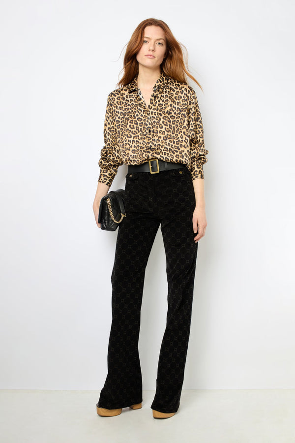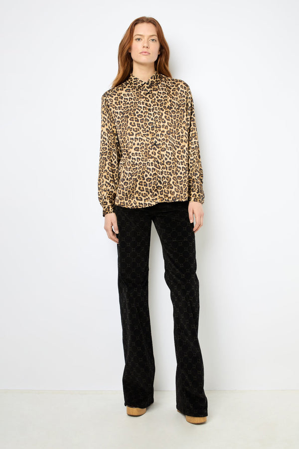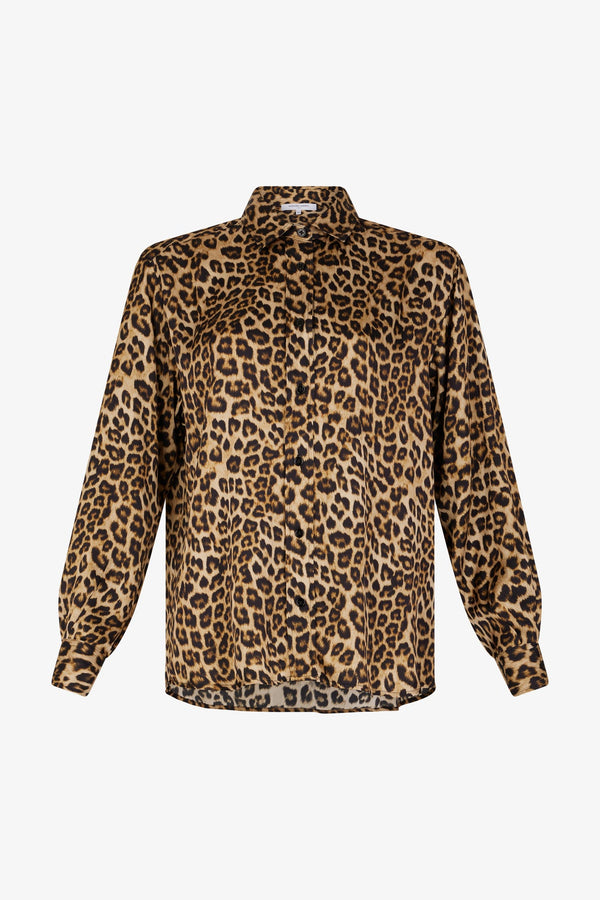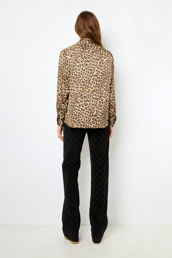 豹纹印花缎面衬衫。