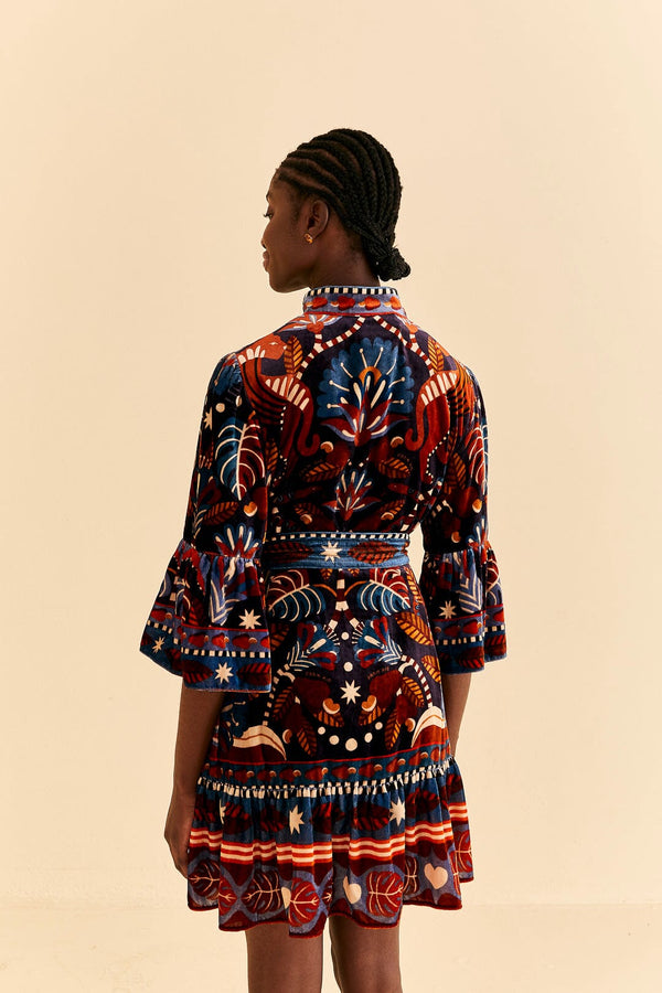 你的过渡期衣橱终于有亮点单品了!蓝色自然之美围巾迷你连衣裙,系带款,惊艳亮相! 大胆的色彩,温暖你的秋日。迷你裙和宽松的袖子为造型增添动感,同时展现你最可爱的沙漏型身材。自然风印花与所有秋季元素相得益彰。搭配你最可爱的鞋子,准备好征服即将到来的季节吧!