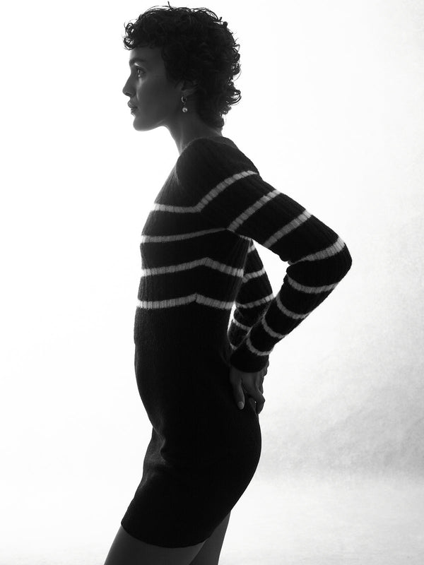 合身水手风格连衣裙。海军蓝水手上衣 宽领 连衣裙顶部罗纹针织 意大利制造