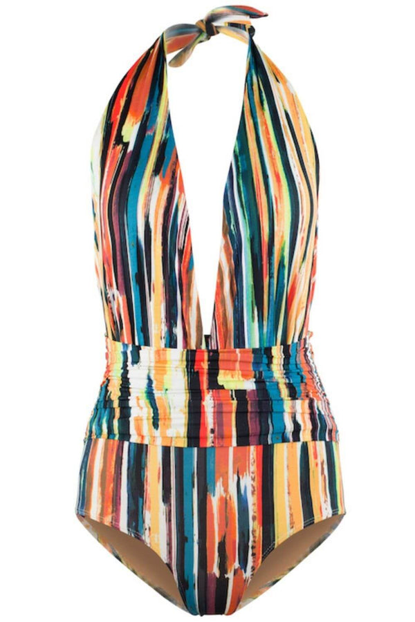来看看我们最受欢迎的泳衣之一——Eva 连体泳衣。深 V 领口和柔软优雅的褶皱,完美展现了纤细的腰线。