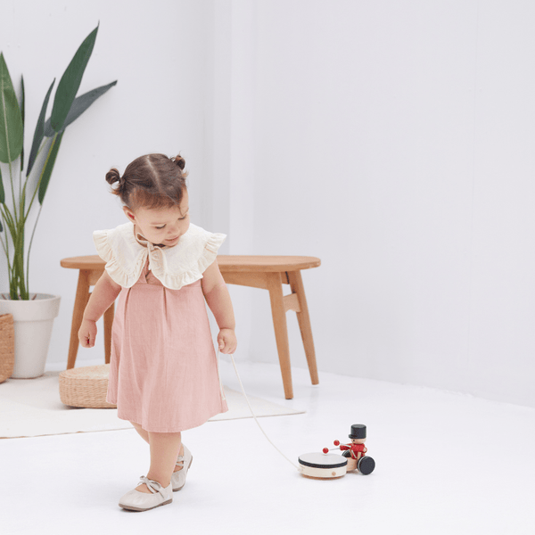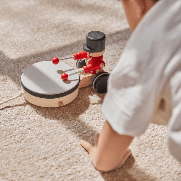 观看 PlanToys 的 Pull Along Drummer 拉着鼓,随着鼓的节奏前进。鼓手在运动过程中敲击鼓面,发出独特的音乐声,鼓励幼儿行走。像这样的拉动玩具能够极大地鼓励小朋友们继续行走,用自己的双脚探索世界。在玩耍的过程中,它们不仅能提高平衡能力,增强手眼协调能力,还能观察他们的大肌肉运动技能!这款木制鼓手是终极的音乐步行伴侣。