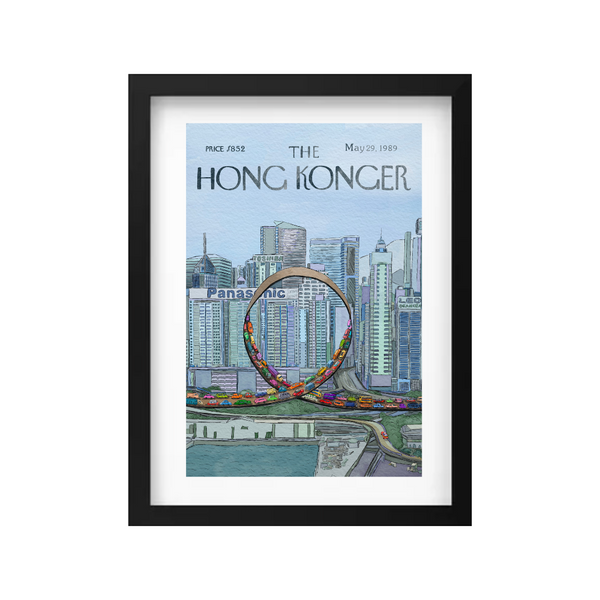 Wan Chai Bypass,"Cars are gridlocked in traffic on a looped highway spanning Wan Chai. Based on the May 29, 1989 New Yorker magazine cover by John O'Brien."