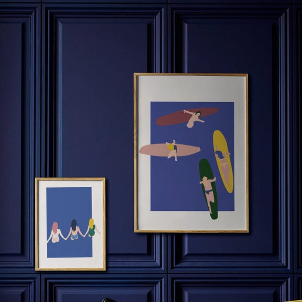 《冲浪者》是一幅平面艺术版画,描绘了四位冲浪者漂浮在蓝色海洋上。Helena Ravenne 大胆的用色,凸显了该系列的剪纸技法。感受脚趾间的细沙,空气中的盐分,让这个系列为你的内心注入夏日活力。材质:200克无涂层、FSC认证、无酸纸。丹麦制造,符合Swan认证体系。