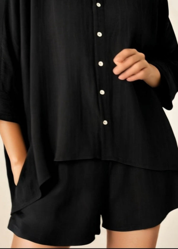 Check out our stylish black linen shorts, perfect for everyday wear! With a loose fit, drawstring elastic waist, and handy side pockets, they’re a great addition to your capsule wardrobe. For a complete look, pair them with our matching oversized black linen shirt. At MiliMilu, we focus on stylish yet practical women's fashion that prioritizes comfort and confidence. Made from high-quality deadstock fabric by local artisans, these breathable shorts are gentle on the skin during warmer months.