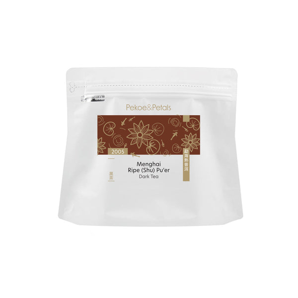 Comforting and grounding, this premium ripe (shu) pu’er is a classic from Menghai, Yunnan Province. Aged since 2005, it is richly smooth, with a velvety body and lingering sweet afternote.