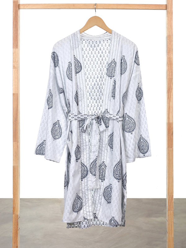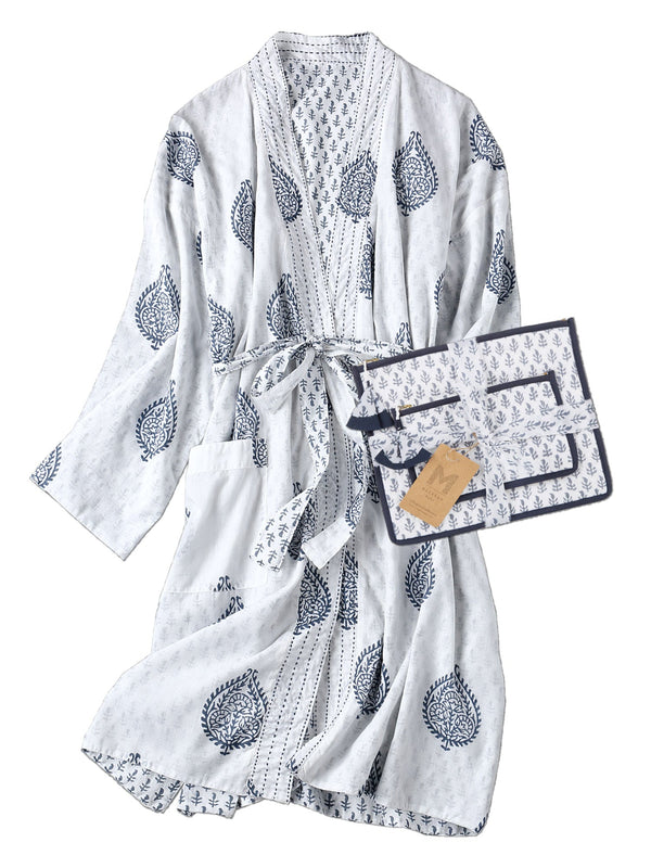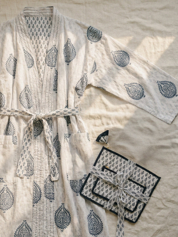 Our reversible block-printed robe is a true embodiment of elegance and versatility. Crafted with utmost care, it showcases intricate block-printed designs on both sides, allowing the recipient to effortlessly switch between two beautiful patterns.
