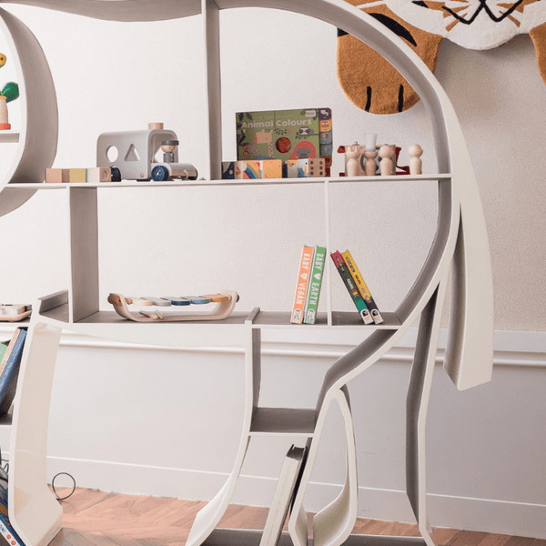 Roaming the open plains and woodland of Africa's dry savannahs, elephants inspire the Elephant Library—an imaginative extension of Bimbo Casa's creativity, drawing from the wonders of the safari and jungle. This library transcends storage to become a magnificent highlight in your children's room or study. Personalize it by selecting the color of the leather, adding a unique touch.