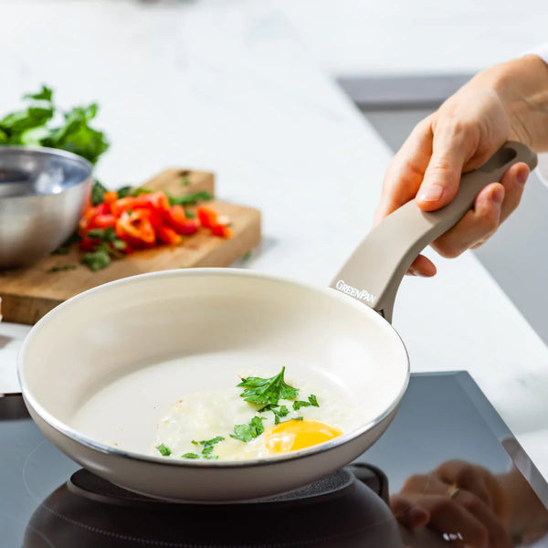 Essence 系列陶瓷易潔鍋時尚美觀,採用經人體工學設計的耐高溫無鉚釘電木手柄,並提供舒適、牢固的抓握力,非常適合每天使用!
