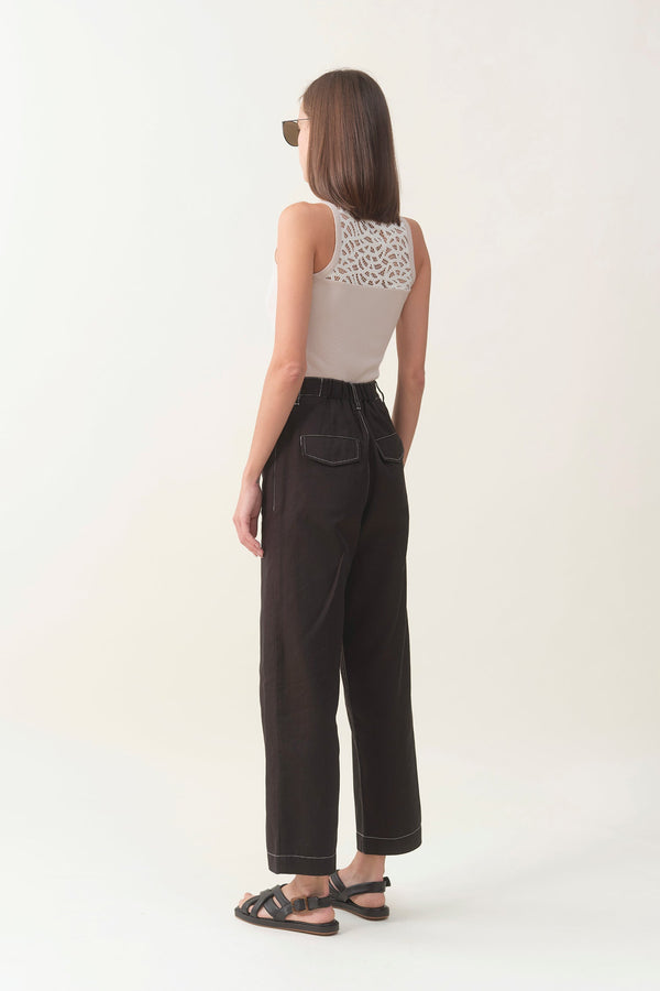 High-waist Linen Wide Pant - Black