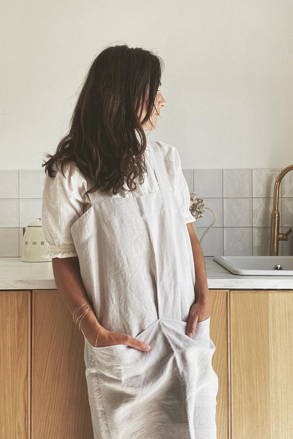 A minimalist linen apron that will keep your clothes clean and your movements free. The stylish and functional apron is entirely handmade from premium quality linen fabric. It is simple but practical, inspired by a traditional Japanese style, with cross-back construction, just pull it over - no need for adjustable ties or hooks and loops. No more trouble tying it, it will feel comfortable and will not feel tight or disturbing you while bending
