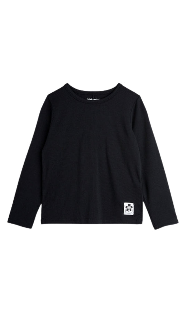 Mini Rodini kids clothing basic line is an essential addition to every child's wardrobe, offering daily essentials perfect for an active and comfortable lifestyle. This black long sleeves top for kids is crafted from TENCEL™ Lyocell with a touch of stretch, ensuring maximum comfort and provides breathable kids clothing. Designed with a regular straight fit and a crew neck, it features a Mini Rodini Panda label on the front. This kids long sleeves top is lightweoght and part of our breathable clothing collecion.