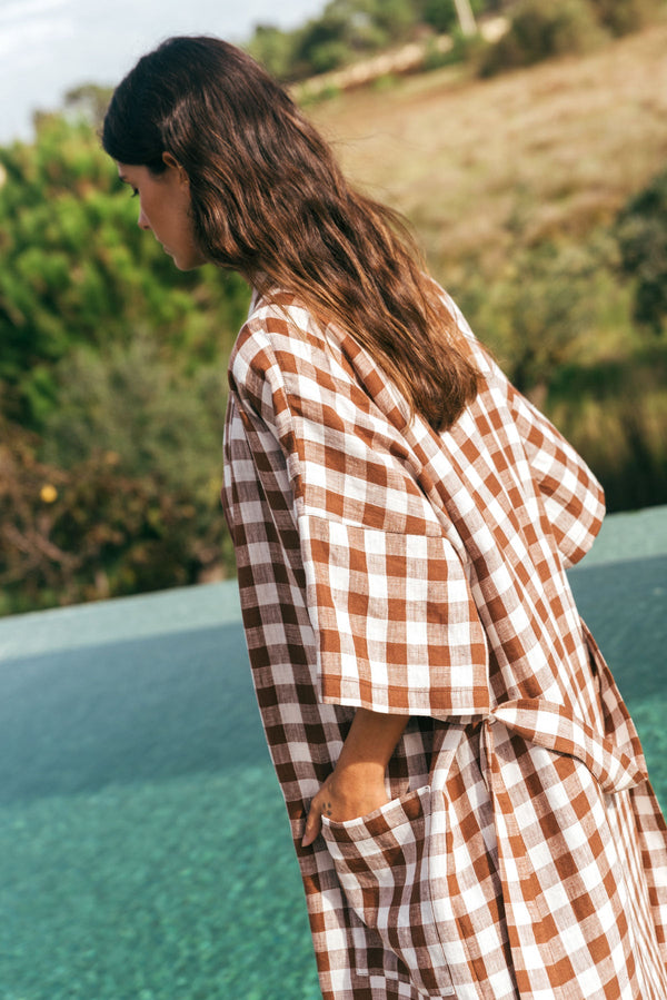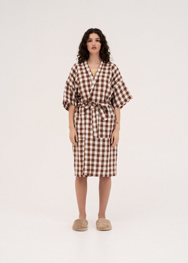 A lovely soft 100% linen bathrobe for women. Kimono style, with a belt and two large pockets. Perfect to chill at home looking super classy or after bath time. Available in 9 different colors and two sizes - something to fit everyone