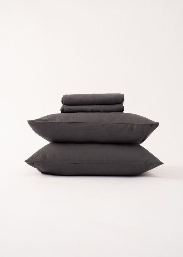 A full set that includes two different types of sheet, flat and fitted sheet, and two-piece of matching pillowcases. Linen sheets have become a really popular choice for bedding thanks to their unique texture, casual look, long lastingness, and comfort.