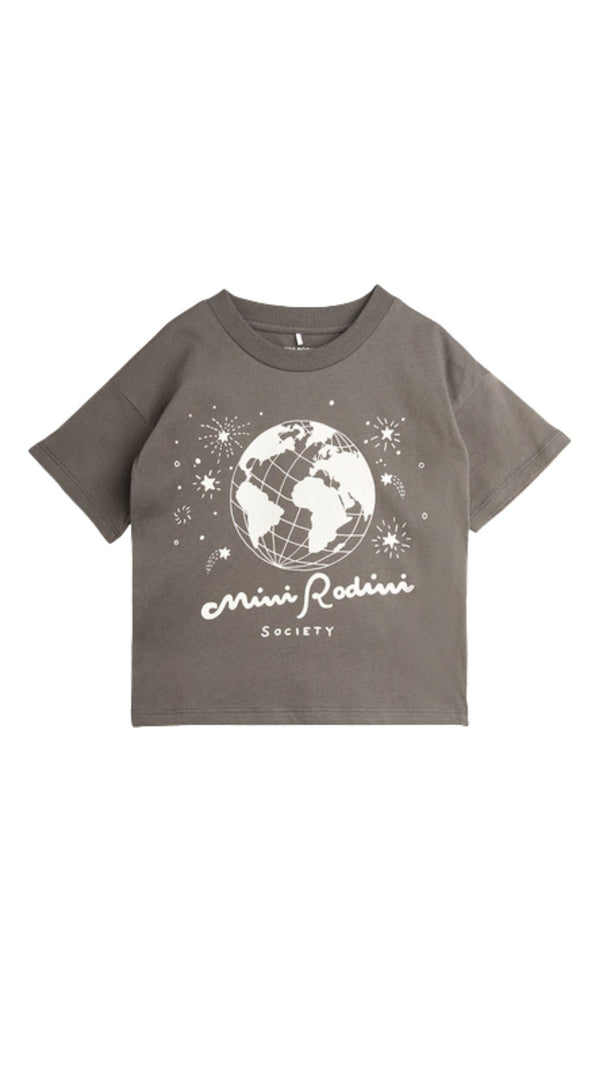 Discover the perfect blend of style and comfort with this Mini Rodini T-shirt in grey. Crafted from 100% GOTS certified organic cotton, it offers superior quality and eco-friendly appeal. The soft and lightweight fabric ensures your child's comfort throughout the day. Featuring a bold Mini Rodini Society print, this kid T-shirt adds a touch of flair to your little one's wardrobe. Its loose fit and ribbed crew neck collar contribute to a relaxed and trendy look. Designed with active kids in mind, the shirt allows for unrestricted movement and is ideal for warm, humid weather thanks to its breathable nature. This grey organic cotton T shirt isn't just fashionable; it's a sustainable choice that doesn't compromise on comfort or style. Whether for everyday wear or special occasions, it's sure to become a favorite in your child's clothing rotation. We love Mini Rodini's organic cotton clothing collection.