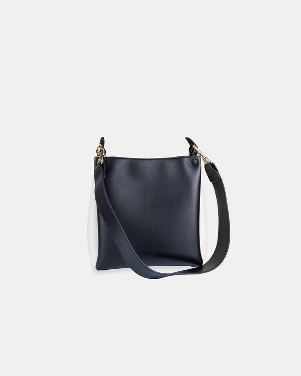 A smaller version of the standard two-tone tote bag with slightly longer handles to carry with your arm or on your shoulder. Detachable shoulder strap for crossbody. The 4cm wide detachable strap allows for extra comfort on the shoulders.