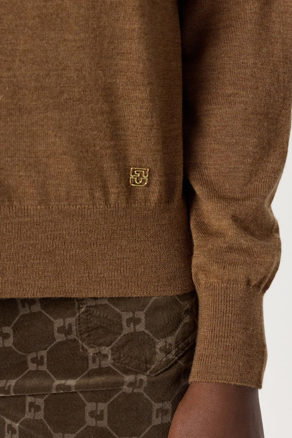 CARDIGAN MADE FROM 100% EXTRA FINE MERINO WOOL, TO WEAR NEXT TO THE SKIN OR OVER A TOP OR WITH THE MATCHING SWEATER IN A TWINSET. CLASSIC STYLE, CAMEL COLOR.